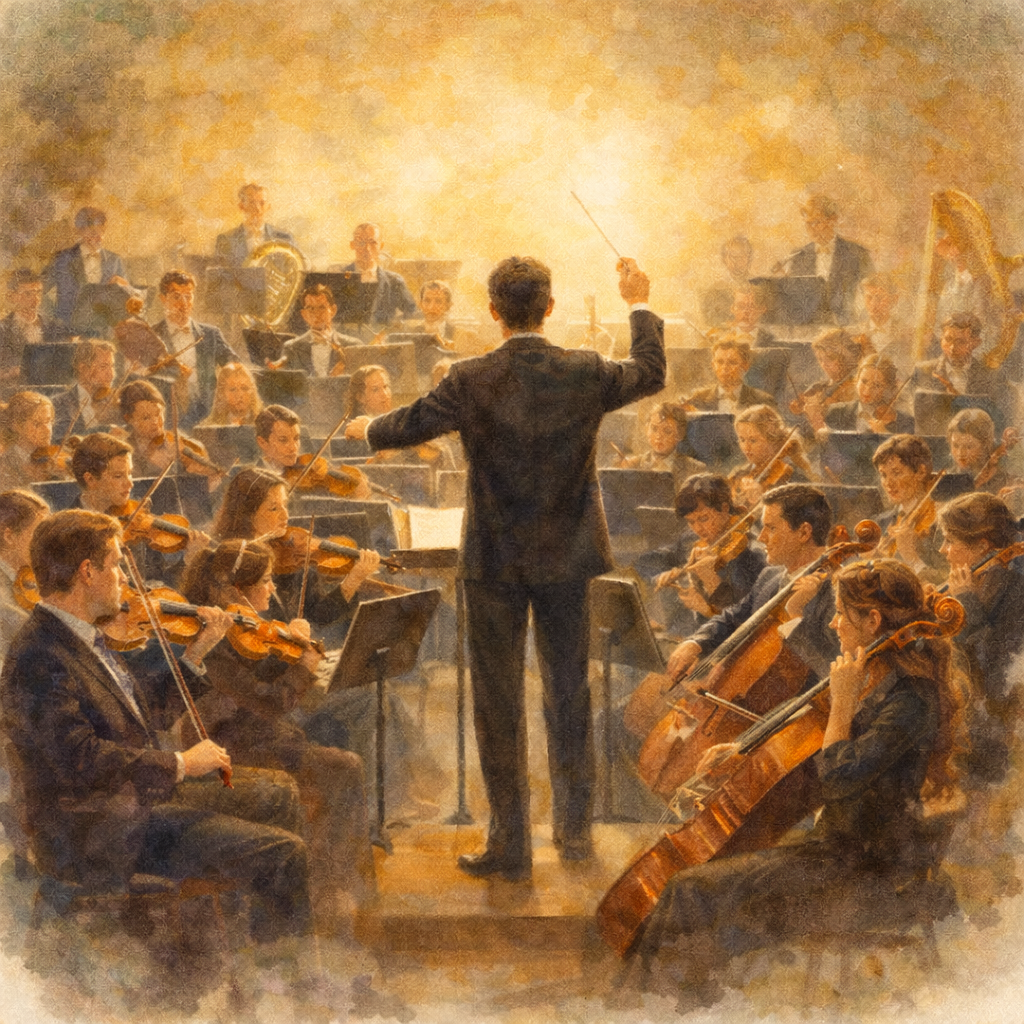 Die "Durchführung" kennt man aus der romantischen Sinfonie. Da erscheint am Anfang das "Thema". Dann wird es durch die verschiedensten Variationen, Harmonien und Dissonanzen geführt. Das ist die "Durchführung". Schliesslich erscheint es geläutert in strahlender Reinheit am Schluss der Sinfonie wieder.